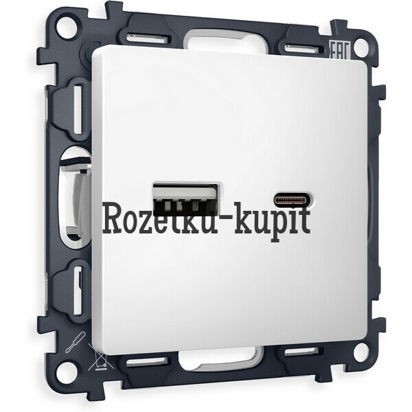 Комплект механизма розетки ALFA MA131010 Белый матовый 2USB A+C 20W 3000mA (быст...