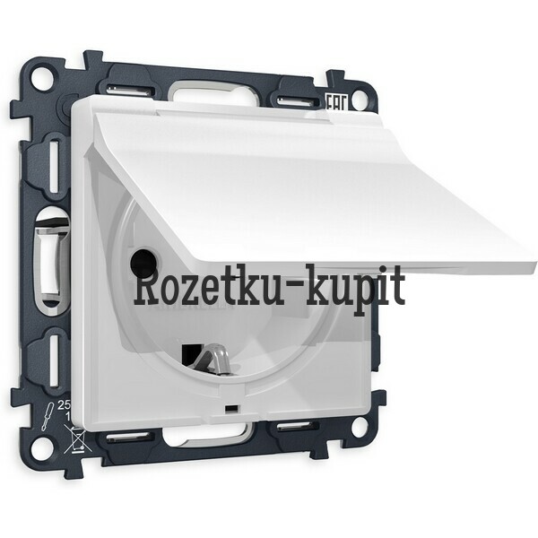 Комплект механизма электрической розетки ALFA MA128010 Белый матовый 16A-250V 50Hz 2P+E с заземлением со шторками и защитной крышкой IP44 QUANT (AP1280, VM141)