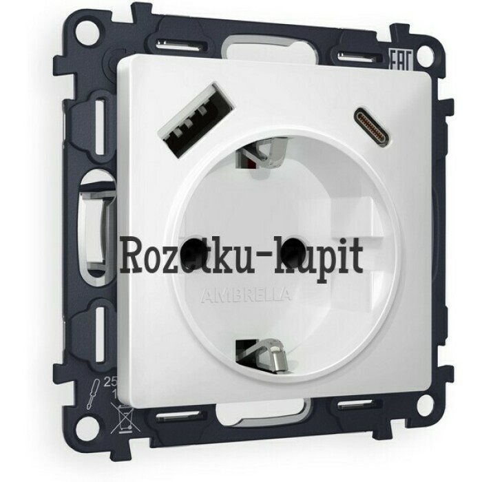 4 202 у3 686 уСкидка 516 уВ наличииAmbrella MA110010Комплект механизма электрической розетки ALFA MA110010 Белый глянец 16A-250V 50Hz 2P+E 2USB A+C 20W (быстрая зарядка) с заземлением со шторками QUANT (AP1100, VM160)