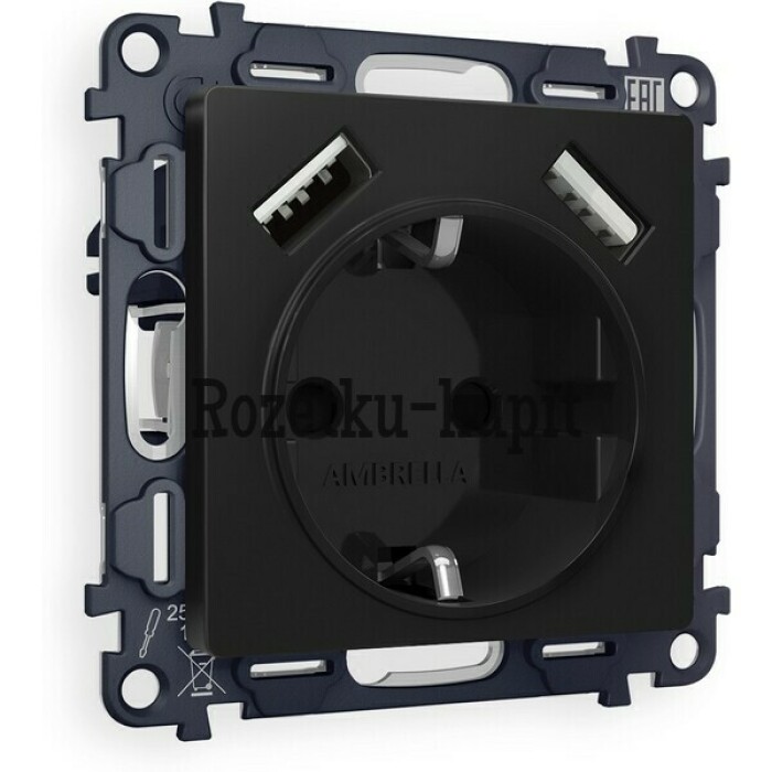 3 060 у2 684 уСкидка 376 уВ наличииAmbrella MA661010Комплект механизма розетки ALFA MA661010 Антрацит серый 2USB A+C 20W 3000mA (быстрая зарядка) 180-220V/50Hz (5V3A, 9V2.22A, 12V1.66A) QUANT (AP6610, VM177) -