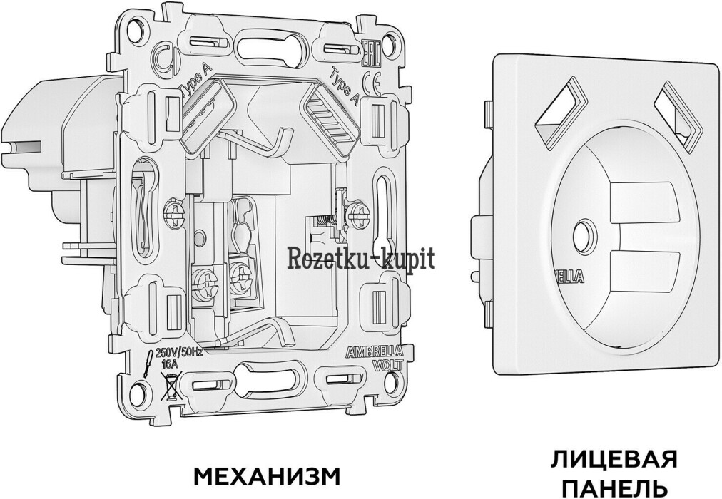 4 202 у3 686 уСкидка 516 уВ наличииAmbrella MA110010Комплект механизма электрической розетки ALFA MA110010 Белый глянец 16A-250V 50Hz 2P+E 2USB A+C 20W (быстрая зарядка) с заземлением со шторками QUANT (AP1100, VM160)
