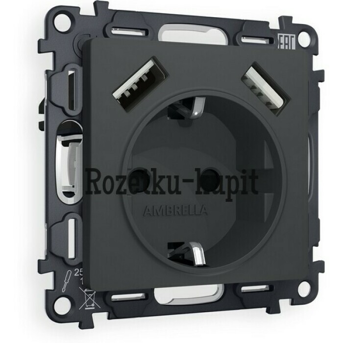 3 060 у2 684 уСкидка 376 уВ наличииAmbrella MA661010Комплект механизма розетки ALFA MA661010 Антрацит серый 2USB A+C 20W 3000mA (быстрая зарядка) 180-220V/50Hz (5V3A, 9V2.22A, 12V1.66A) QUANT (AP6610, VM177) -