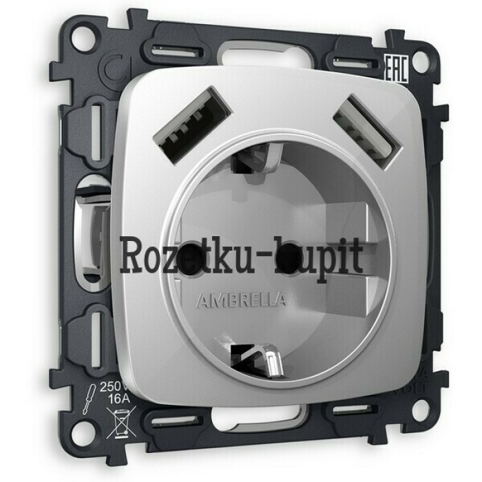 3 060 у2 684 уСкидка 376 уВ наличииAmbrella MA661010Комплект механизма розетки ALFA MA661010 Антрацит серый 2USB A+C 20W 3000mA (быстрая зарядка) 180-220V/50Hz (5V3A, 9V2.22A, 12V1.66A) QUANT (AP6610, VM177) -