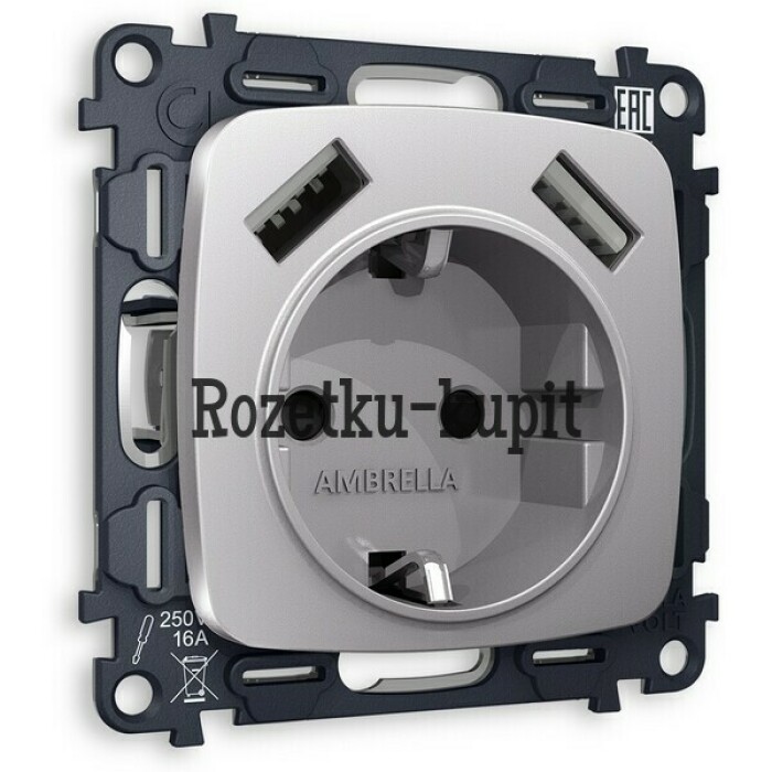 3 060 у2 684 уСкидка 376 уВ наличииAmbrella MA661010Комплект механизма розетки ALFA MA661010 Антрацит серый 2USB A+C 20W 3000mA (быстрая зарядка) 180-220V/50Hz (5V3A, 9V2.22A, 12V1.66A) QUANT (AP6610, VM177) -