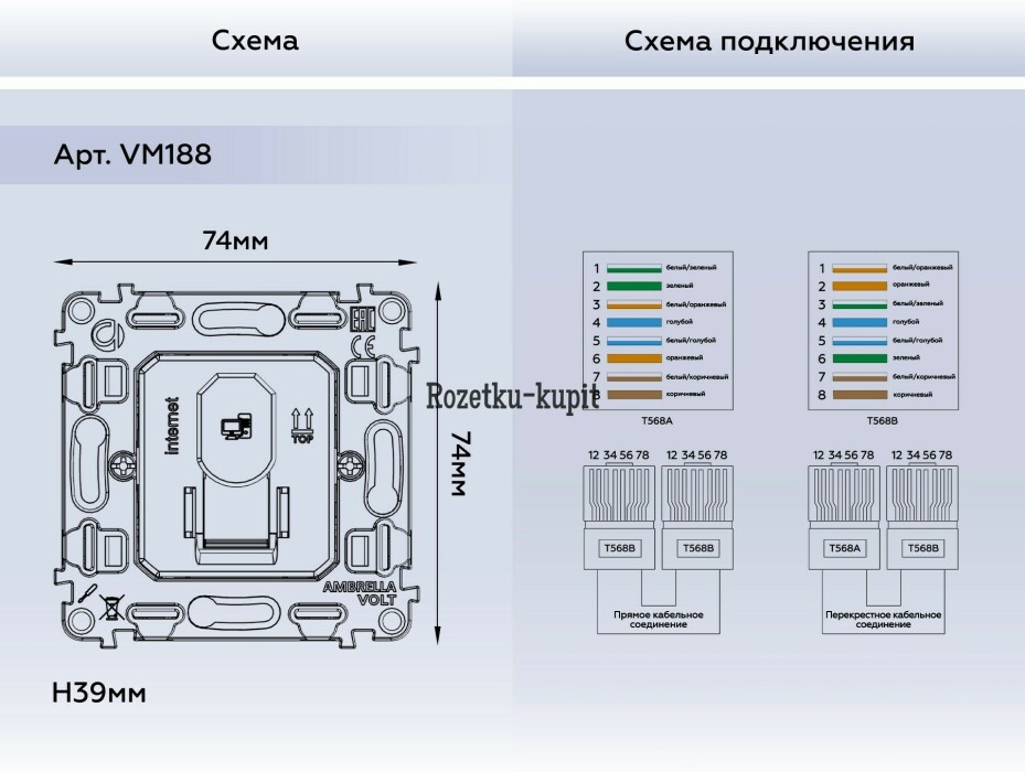 Отзывы о Купить Механизм компьютерной розетки Ambrella VM188