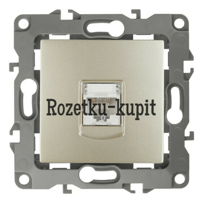 Розетка интернет RJ45 серии Эра 12 скрытой установки механизм цвет шампань 12-3107-04. Сделана из поликарбоната. Монтаж в подрозетник производится и на лапки, и на винты. Рамки приобретаются отдельно. Рамки Эра 12: 1 пост 12-5001-хх, 2 поста 12-5002-хх, 3 поста 12-5003-хх, 4 поста 12-5004-хх, 5 постов 12-5005-хх. Рамки Эра 12 Сатин: 1 пост 12-5101-хх, 2 поста 12-5102-хх, 3 поста 12-5103-хх, 4 поста 12-5104-хх, 5 постов - 12-5105-хх (хх - код цвета: 01-белый, 02-слоновая кость, 03-алюминий, 04-шампань, 05-антрацит, 06-чёрный, 07-ольха(белёный дуб-сатин), 08-вишня, 09-дуб, 10-венге, 11-сосна, 21-жёлтый, 22-оранжевый, 23-красный, 24-охра, 25-бордо, 26-лайм, 27-зелёный, 28-голубой, 29-синий).