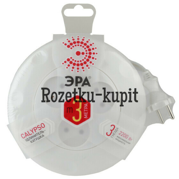 Удлинитель электрический рулетка Эра UR-3-3m-W без заземления, ШВВП, 2x1мм2, 3 розетки, 3 м. Рассчитан на максимальную мощность 10А/2200. Удлинитель Эра станет Вашим надежным помощником, если Ваши любимые электроприборы находятся далеко от розеток. Провод в удлинителях Эра сделан из 100% меди, что делает его абсолютно пожаробезопасным. Корпус выполнен из ударопрочного и негорючего пластика (полипропилен).