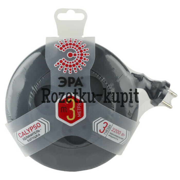 Удлинитель электрический рулетка Эра UR-3-3m-B без заземления, ШВВП, 2x1мм2, 3 розетки, 3 м. Рассчитан на максимальную мощность 10А/2200. Удлинитель Эра станет Вашим надежным помощником, если Ваши любимые электроприборы находятся далеко от розеток. Провод в удлинителях Эра сделан из 100% меди, что делает его абсолютно пожаробезопасным. Корпус выполнен из ударопрочного и негорючего пластика (полипропилен).