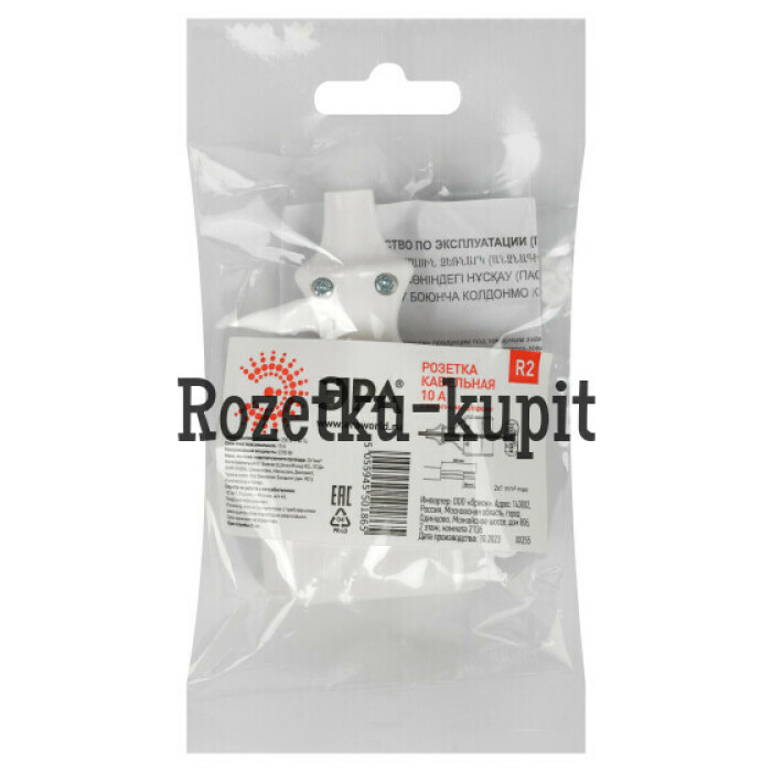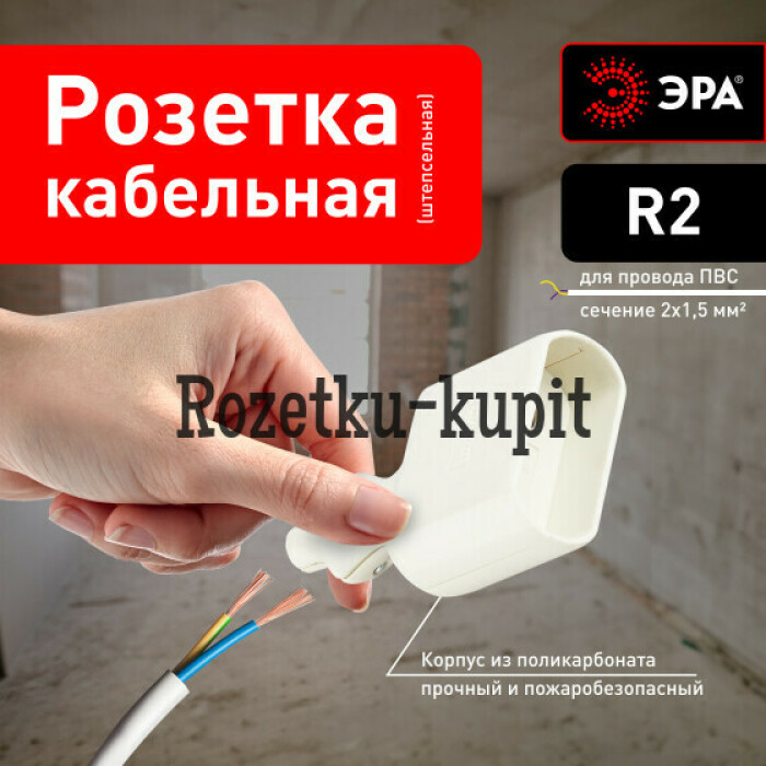 Розетка штепсельная ЭРА, максимальная мощность - 10A/2200В (кабель до 2x1мм2), поликарбонат