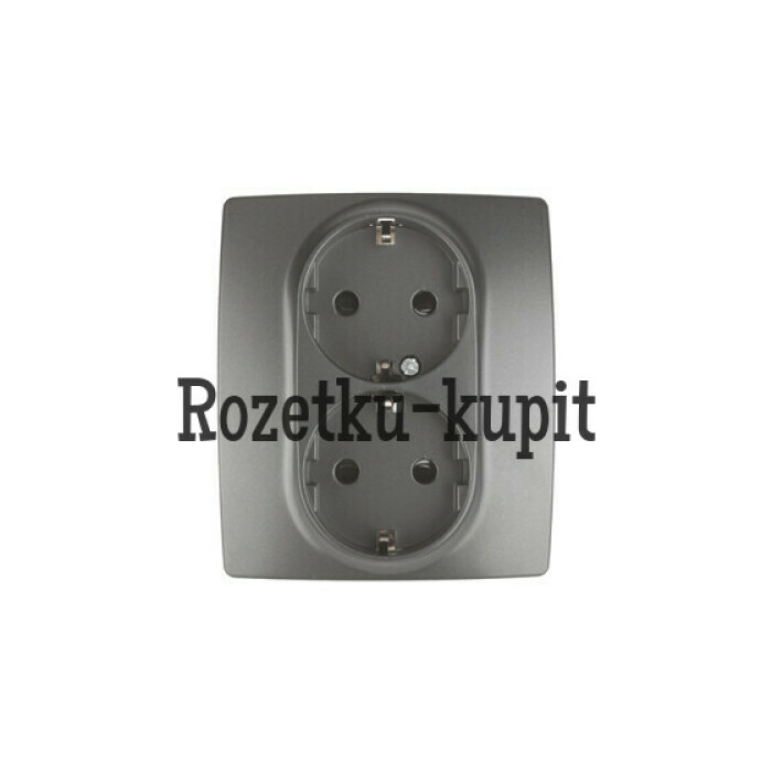 Розетка 2X2P+E Schuko со шторками, 16АХ-250В, Эра12, графит