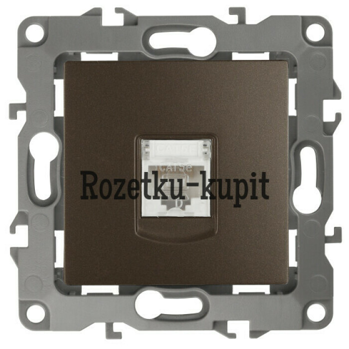 Розетка интернет RJ45 серии Эра 12 скрытой установки механизм цвет бронза 12-3107-13. Сделана из поликарбоната. Монтаж в подрозетник производится и на лапки, и на винты. Рамки приобретаются отдельно. Рамки Эра 12: 1 пост 12-5001-хх, 2 поста 12-5002-хх, 3 поста 12-5003-хх, 4 поста 12-5004-хх, 5 постов 12-5005-хх. Рамки Эра 12 Сатин: 1 пост 12-5101-хх, 2 поста 12-5102-хх, 3 поста 12-5103-хх, 4 поста 12-5104-хх, 5 постов - 12-5105-хх
