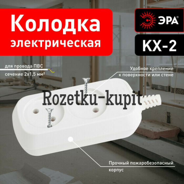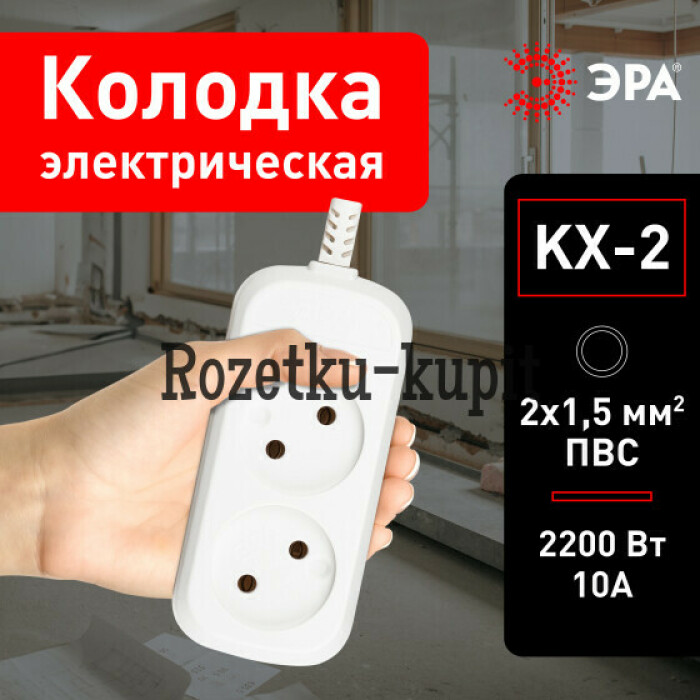 Колодка ЭРА без заземления. Максимальная мощность - 10 А/2200 Вт. Для кабеля до 2х1мм2