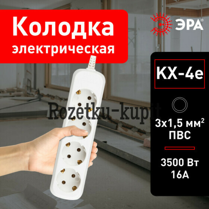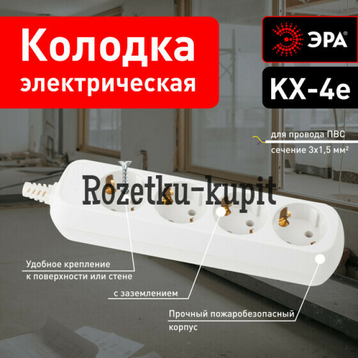 Колодка ЭРА с заземлением. Максимальная мощность - 16 А/3500 Вт. Для кабеля до 3х1,5мм2