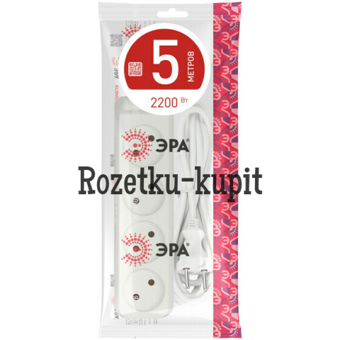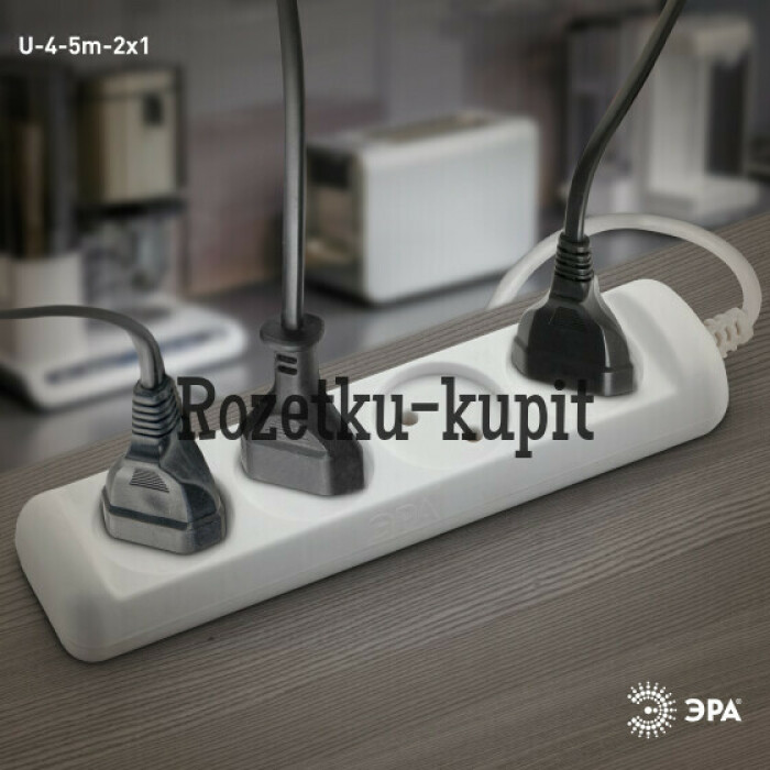 Удлинитель электрический Эра U-4-5m без заземления, ПВС, 2x1мм2, 4 розетки, 5м. Рассчитан на максимальную мощность 10А/2200 Вт. Удлинитель Эра станет Вашим надежным помощником, если Ваши любимые электроприборы находятся далеко от розеток. Провод в удлинителях Эра сделан из 100% меди, что делает его абсолютно пожаробезопасным. Корпус выполнен из ударопрочного и негорючего пластика (полипропилен). В моделях с заземлением у вилки есть кольцо для удобного извлечения из розетки. Модель удлинителя на 10А позволяет подключить мощные бытовые приборы общей нагрузкой до 2200Вт. Не бойтесь включить чайник, обогреватель, микроволновку или другие электроприборы. Толстый провод удлинителя Эра гарантирует полную безопасность. Дизайн удлинителя разработан в России командой Эра Style.