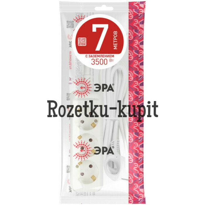 Удлинитель электрический Эра U-3e-7m-3x1 с заземлением, ПВС, 3x1мм2, 3 розетки, 7м. Рассчитан на максимальную мощность 16А/3500 Вт. Удлинитель Эра станет Вашим надежным помощником, если Ваши любимые электроприборы находятся далеко от розеток. Провод в удлинителях Эра сделан из 100% меди, что делает его абсолютно пожаробезопасным. Корпус выполнен из ударопрочного и негорючего пластика (полипропилен). В моделях с заземлением у вилки есть кольцо для удобного извлечения из розетки. Модель удлинителя на 16А позволяет подключить мощные бытовые приборы общей нагрузкой до 3500Вт. Не бойтесь включить чайник, обогреватель, микроволновку или другие электроприборы. Толстый провод удлинителя Эра гарантирует полную безопасность. Дизайн удлинителя разработан в России командой Эра Style.