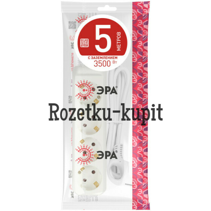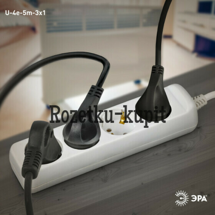 Удлинитель электрический Эра U-4e-5m-3x1 с заземлением, ПВС, 3x1мм2, 4 розетки, 5 м. Рассчитан на максимальную мощность 16А/3500 Вт. Удлинитель Эра станет Вашим надежным помощником, если Ваши любимые электроприборы находятся далеко от розеток. Провод в удлинителях Эра сделан из 100% меди, что делает его абсолютно пожаробезопасным. Корпус выполнен из ударопрочного и негорючего пластика (полипропилен). В моделях с заземлением у вилки есть кольцо для удобного извлечения из розетки. Модель удлинителя на 16А позволяет подключить мощные бытовые приборы общей нагрузкой до 3500Вт. Не бойтесь включить чайник, обогреватель, микроволновку или другие электроприборы. Толстый провод удлинителя Эра гарантирует полную безопасность. Дизайн удлинителя разработан в России командой Эра Style.