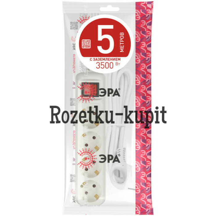 Удлинитель электрический Эра U-4es-5m-3x1 с заземлением, с выключателем, ПВС, 3x1мм2, 4 розетки, 5 м. Рассчитан на максимальную мощность 16А/3500 Вт. Удлинитель Эра станет Вашим надежным помощником, если Ваши любимые электроприборы находятся далеко от розеток. Провод в удлинителях Эра сделан из 100% меди, что делает его абсолютно пожаробезопасным. Корпус выполнен из ударопрочного и негорючего пластика (полипропилен). В моделях с заземлением у вилки есть кольцо для удобного извлечения из розетки. Модель удлинителя на 16А позволяет подключить мощные бытовые приборы общей нагрузкой до 3500Вт. Не бойтесь включить чайник, обогреватель, микроволновку или другие электроприборы. Толстый провод удлинителя Эра гарантирует полную безопасность. Дизайн удлинителя разработан в России командой Эра Style.