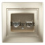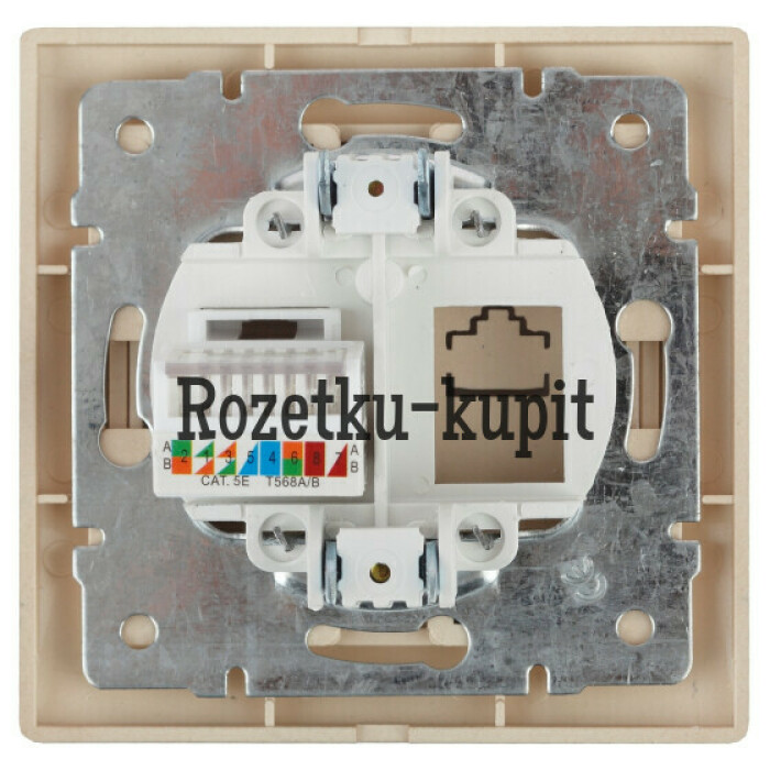 Розетка RJ45 серии Intro Plano скрытой установки цвет шампань 1-303-04. Номинальные характеристики . Розетка выполнена из термопласта, укомплектована одноместной рамкой. Для установки 2-х и более устройств в несколько подрозетников в ряд дополнительно используются многоместные рамки: 2-х постовая - 1-502-хх, 3-х постовая 1-503-хх, 4-х постовая - 1-504-хх (где хх - цветовой код: 01 - белый, 02 - слоновая кость, 03 - алюминий, 04 - шампань, 05 - антрацит, 10 - венге, 11 - сосна).