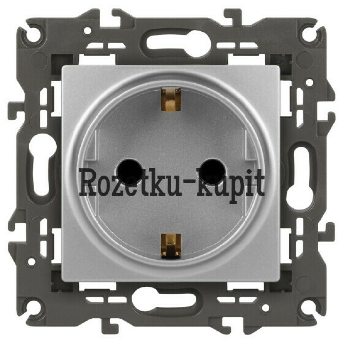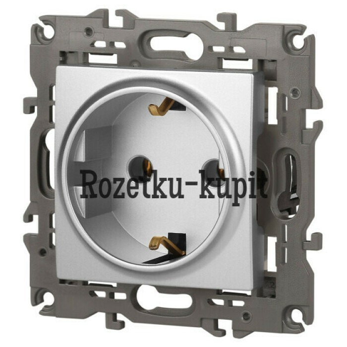 Розетка с заземлением Эра Elegance алюминий 14-2101-03. Оснащёна автоматическими клеммами для надёжной фиксации жил кабеля в механизме. Рамки приобретаются отдельно. Рамки Эра Elegance ПЛАСТИК: 1 пост 14-5001-хх, 2 поста 14-5002-хх, 3 поста 14-5003-хх, 4 поста 14-5004-хх, 5 постов 14-5005-хх; СТЕКЛО: 1 пост 14-5101-хх, 2 поста 14-5102-хх, 3 поста 14-5103-хх, 4 поста 14-5104-хх; МЕТАЛЛ: 1 пост 14-5201-хх, 2 поста 14-5202-хх, 3 поста 14-5203-хх, 4 поста 14-5204-хх; ДЕРЕВО: 1 пост 14-5301-хх, 2 поста 14-5302-хх, 3 поста 14-5303-хх, 4 поста 14-5304-хх (хх - код цвета: 00-прозрачный, 01-белый, белёный дуб, 02-слоновая кость, 03-алюминий, 04-шампань, 05-чёрный, чёрное дерево, 07-ясень, 09-дуб, 10-венге, 11-клён, 14-медь, 21-жёлтый, 22-оранжевый, 23-красный, 25-бордо, 26-лайм, 27-зелёный, 28-голубой, 29-синий, 30-розовый, 31-мокко, 32-серый, 41-сталь, 42-титан).