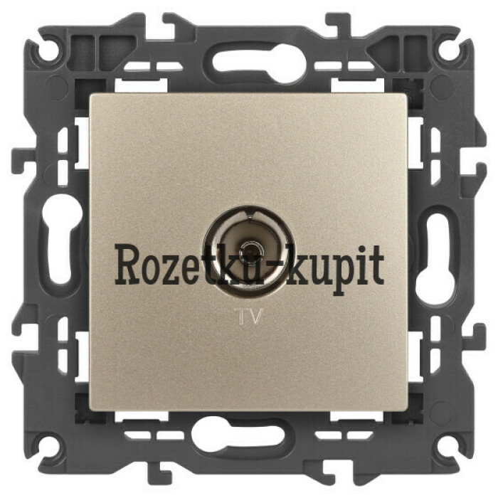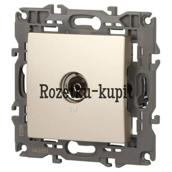 Розетка телевизионная одиночная серии Эра Elegance цвет шампань 14-3101-04. Рамки приобретаются отдельно. Рамки Эра Elegance ПЛАСТИК: 1 пост 14-5001-хх, 2 поста 14-5002-хх, 3 поста 14-5003-хх, 4 поста 14-5004-хх, 5 постов 14-5005-хх; СТЕКЛО: 1 пост 14-5101-хх, 2 поста 14-5102-хх, 3 поста 14-5103-хх, 4 поста 14-5104-хх; МЕТАЛЛ: 1 пост 14-5201-хх, 2 поста 14-5202-хх, 3 поста 14-5203-хх, 4 поста 14-5204-хх; ДЕРЕВО: 1 пост 14-5301-хх, 2 поста 14-5302-хх, 3 поста 14-5303-хх, 4 поста 14-5304-хх (хх - код цвета: 00-прозрачный, 01-белый, белёный дуб, 02-слоновая кость, 03-алюминий, 04-шампань, 05-чёрный, чёрное дерево, 07-ясень, 09-дуб, 10-венге, 11-клён, 14-медь, 21-жёлтый, 22-оранжевый, 23-красный, 25-бордо, 26-лайм, 27-зелёный, 28-голубой, 29-синий, 30-розовый, 31-мокко, 32-серый, 41-сталь, 42-титан).