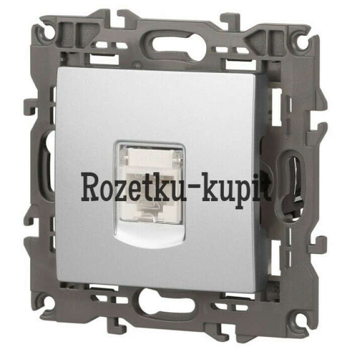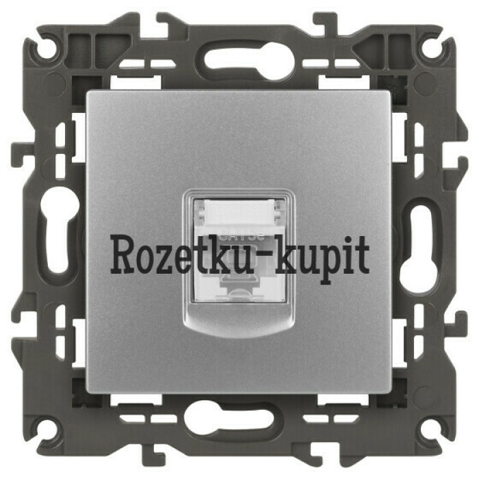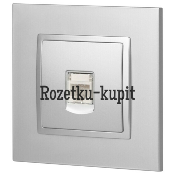 Розетка интернет RJ45 серии Эра Elegance цвет алюминий 14-3107-03. Рамки приобретаются отдельно. Рамки Эра Elegance ПЛАСТИК: 1 пост 14-5001-хх, 2 поста 14-5002-хх, 3 поста 14-5003-хх, 4 поста 14-5004-хх, 5 постов 14-5005-хх; СТЕКЛО: 1 пост 14-5101-хх, 2 поста 14-5102-хх, 3 поста 14-5103-хх, 4 поста 14-5104-хх; МЕТАЛЛ: 1 пост 14-5201-хх, 2 поста 14-5202-хх, 3 поста 14-5203-хх, 4 поста 14-5204-хх; ДЕРЕВО: 1 пост 14-5301-хх, 2 поста 14-5302-хх, 3 поста 14-5303-хх, 4 поста 14-5304-хх (хх - код цвета: 00-прозрачный, 01-белый, белёный дуб, 02-слоновая кость, 03-алюминий, 04-шампань, 05-чёрный, чёрное дерево, 07-ясень, 09-дуб, 10-венге, 11-клён, 14-медь, 21-жёлтый, 22-оранжевый, 23-красный, 25-бордо, 26-лайм, 27-зелёный, 28-голубой, 29-синий, 30-розовый, 31-мокко, 32-серый, 41-сталь, 42-титан).
