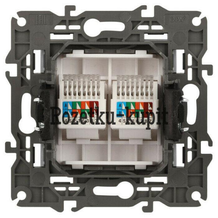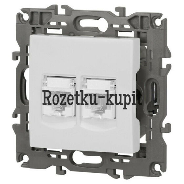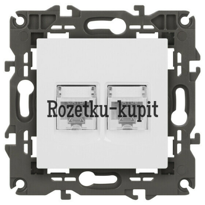 Розетка информационная двойная 2XRJ45 серии Эра Elegance скрытой установки цвет белый 14-3108-01. Выполенена из поликарбоната.