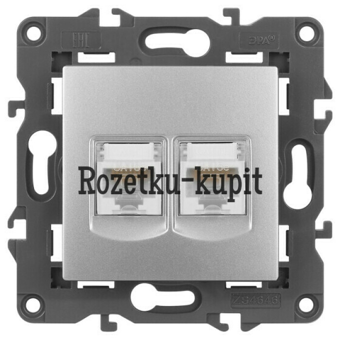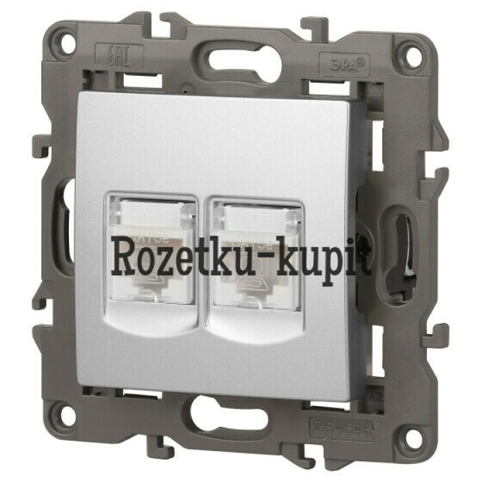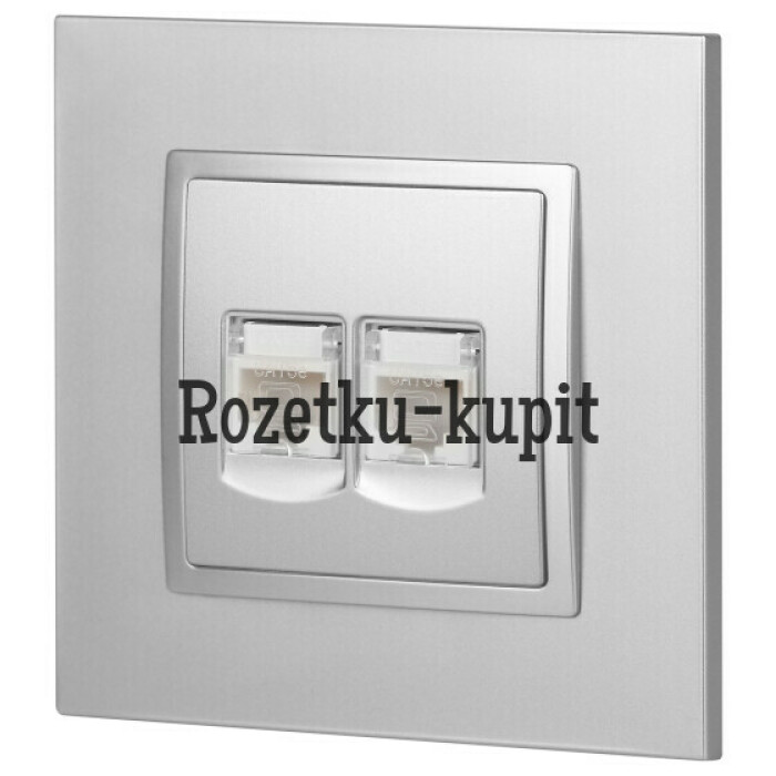 Розетка информационная двойная 2XRJ45 серии Эра Elegance скрытой установки цвет алюминий 14-3108-03. Выполенена из поликарбоната.