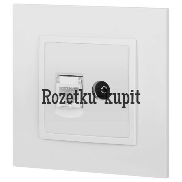 Розетка телевизионная + интернет серии Эра Elegance цвет белый 14-3110-01. Рамки приобретаются отдельно. Рамки Эра Elegance ПЛАСТИК: 1 пост 14-5001-хх, 2 поста 14-5002-хх, 3 поста 14-5003-хх, 4 поста 14-5004-хх, 5 постов 14-5005-хх; СТЕКЛО: 1 пост 14-5101-хх, 2 поста 14-5102-хх, 3 поста 14-5103-хх, 4 поста 14-5104-хх; МЕТАЛЛ: 1 пост 14-5201-хх, 2 поста 14-5202-хх, 3 поста 14-5203-хх, 4 поста 14-5204-хх; ДЕРЕВО: 1 пост 14-5301-хх, 2 поста 14-5302-хх, 3 поста 14-5303-хх, 4 поста 14-5304-хх (хх - код цвета: 00-прозрачный, 01-белый, белёный дуб, 02-слоновая кость, 03-алюминий, 04-шампань, 05-чёрный, чёрное дерево, 07-ясень, 09-дуб, 10-венге, 11-клён, 14-медь, 21-жёлтый, 22-оранжевый, 23-красный, 25-бордо, 26-лайм, 27-зелёный, 28-голубой, 29-синий, 30-розовый, 31-мокко, 32-серый, 41-сталь, 42-титан).