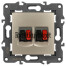 Розетка двойная аудио стерео серии Эра Elegance цвет шампань 14-3112-04. Рамки приобретаются отдельно. Рамки Эра Elegance ПЛАСТИК: 1 пост 14-5001-хх, 2 поста 14-5002-хх, 3 поста 14-5003-хх, 4 поста 14-5004-хх, 5 постов 14-5005-хх; СТЕКЛО: 1 пост 14-5101-хх, 2 поста 14-5102-хх, 3 поста 14-5103-хх, 4 поста 14-5104-хх; МЕТАЛЛ: 1 пост 14-5201-хх, 2 поста 14-5202-хх, 3 поста 14-5203-хх, 4 поста 14-5204-хх; ДЕРЕВО: 1 пост 14-5301-хх, 2 поста 14-5302-хх, 3 поста 14-5303-хх, 4 поста 14-5304-хх (хх - код цвета: 00-прозрачный, 01-белый, белёный дуб, 02-слоновая кость, 03-алюминий, 04-шампань, 05-чёрный, чёрное дерево, 07-ясень, 09-дуб, 10-венге, 11-клён, 14-медь, 21-жёлтый, 22-оранжевый, 23-красный, 25-бордо, 26-лайм, 27-зелёный, 28-голубой, 29-синий, 30-розовый, 31-мокко, 32-серый, 41-сталь, 42-титан).