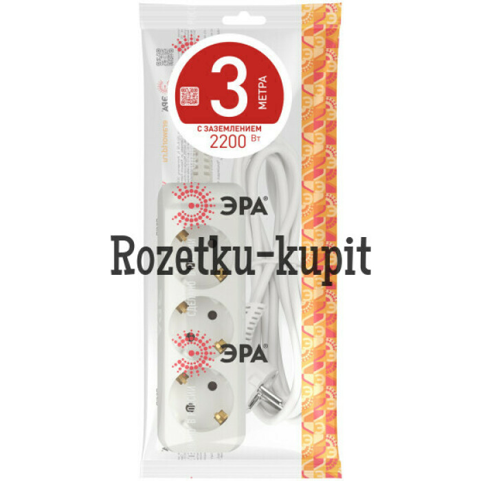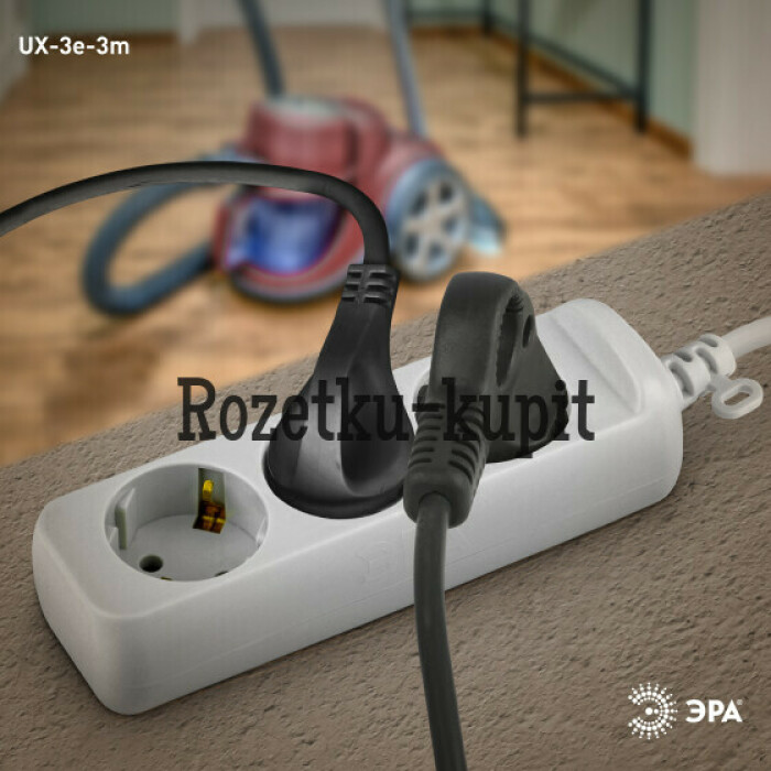 Удлинитель электрический Эра UX-3e-3m с заземлением, ПВС, 3x0,75мм2, 3 розетки, 3 м. Рассчитан на максимальную мощность 10А/2200 Вт. Удлинитель Эра станет Вашим надежным помощником, если Ваши любимые электроприборы находятся далеко от розеток. Провод в удлинителях Эра сделан из 100% меди, что делает его абсолютно пожаробезопасным. Корпус выполнен из ударопрочного и негорючего пластика (полипропилен). Вилка обеспечена кольцом для удобного извлечения ее из розетки. Модель удлинителя на 10А позволяет подключить бытовые приборы общей нагрузкой до 2200Вт. Дизайн удлинителя разработан в России командой Эра Style.