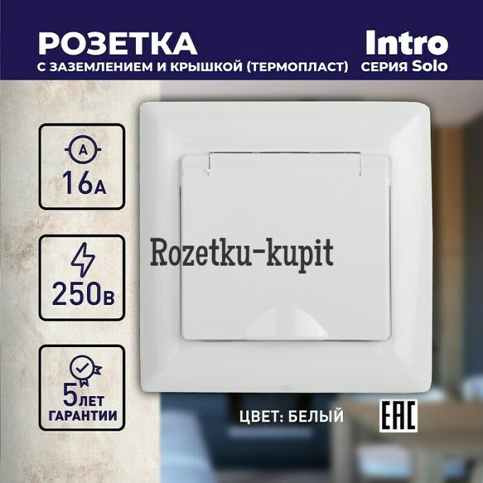 Розетка с крышкой со шторками серии Intro Solo скрытой установки цвет белый 4-203-01. Номинальные характеристики 16А 250В. Розетка выполнена из негорючего термопласта, укомплектована одноместной рамкой, оснащена винтовыми клеммами. Клеммы с двумя отверстиями позволяют соединять соседние розетки шлейфом. Установка в подрозетник производится как на монтажные лапки, так и на винты.