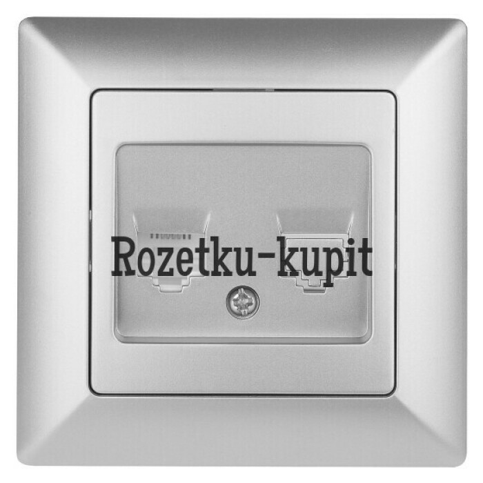 Розетка телефонная RJ11, серии Solo, скрытой установки 4-302-03 цвет алюминий. Выполнена из негорючего термопластика, укомплектована одноместной рамкой.
