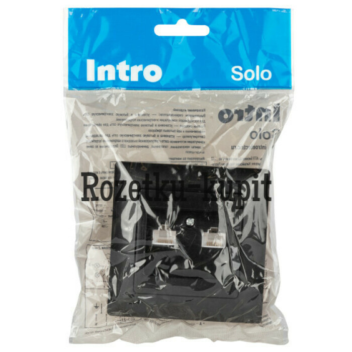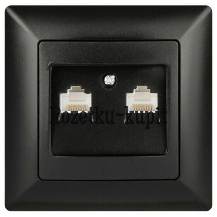 Розетка информационная на два порта 2xRJ45, серии Solo, скрытой установки 4-304-05 цвет антрацит. Выполнена из термопластика, укомплектована одноместной рамкой.