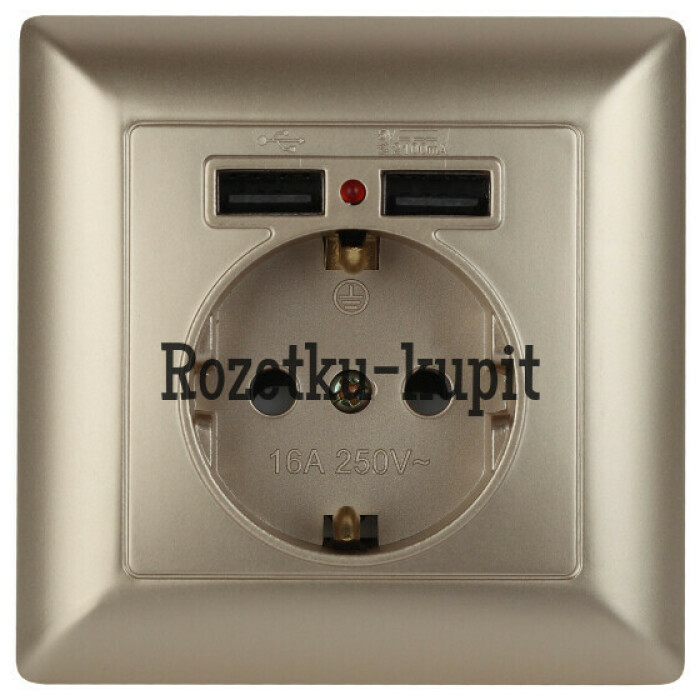 Розетка с USB со шторкой серии Intro Solo скрытой установки цвет шампань 4-410-04. Номинальные характеристики 16А 250В/2,1А-5В . Розетка выполнена из негорючего термопласта, укомплектована одноместной рамкой, оснащена винтовыми клеммами. Клеммы с двумя отверстиями позволяют соединять соседние розетки шлейфом. Установка в подрозетник производится как на монтажные лапки, так и на винты.