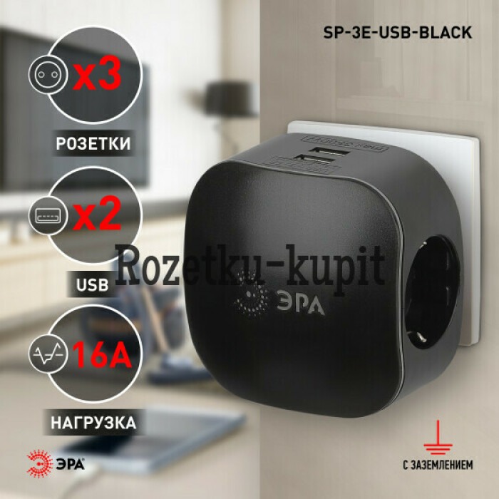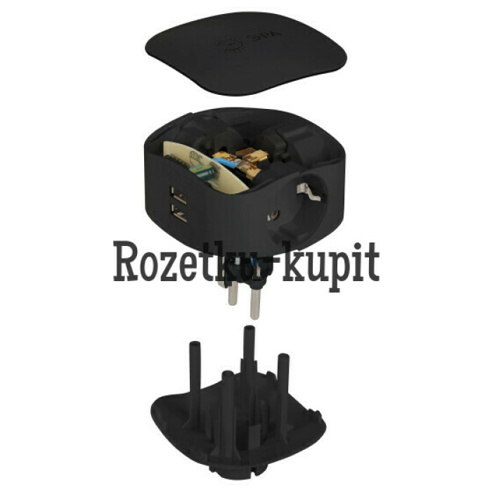 Тройник (адаптер) ЭРА с 3-мя розетками и 2-мя USB гнездами для зарядки портативных устройств. Идеален для зарядки мобильных телефонов и планшетов. Незаменим с собой в дороге. Особенно актуален когда в помещении мало источников подключения - можно из одной розетки сделать три и при этом ещё заряжать 2 устройства одновременно через USB. Максимальная мощность USB разъемов: 2100 мА. Разработан в России.