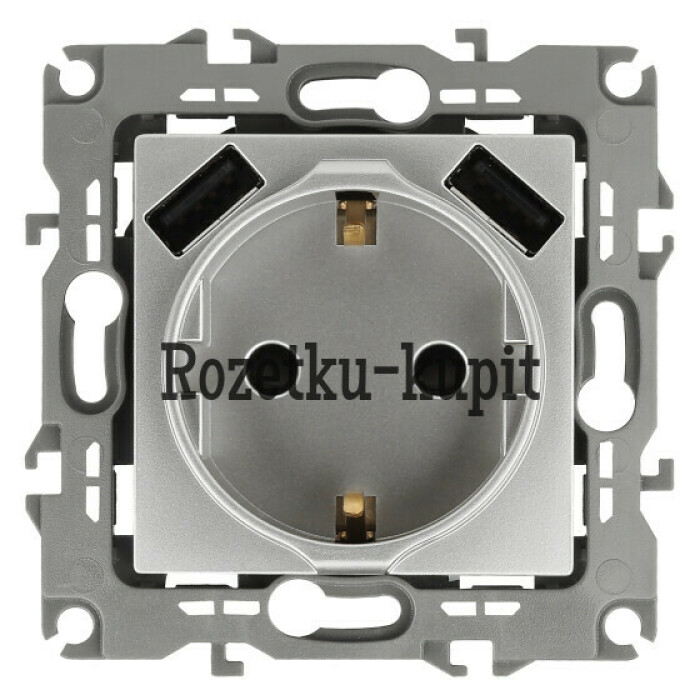 Розетка с заземлением с USB со шторками серии Эра 12 скрытой установки механизм цвет алюминий 12-4109-03. Номинальные характеристики 16А 250В/3А-5В . Сделана из поликарбоната. Монтаж в подрозетник производится и на лапки, и на винты. Рамки приобретаются отдельно. Рамки Эра 12: 1 пост 12-5001-хх, 2 поста 12-5002-хх, 3 поста 12-5003-хх, 4 поста 12-5004-хх, 5 постов 12-5005-хх. Рамки Эра 12 Сатин: 1 пост 12-5101-хх, 2 поста 12-5102-хх, 3 поста 12-5103-хх, 4 поста 12-5104-хх, 5 постов - 12-5105-хх (хх - код цвета: 01-белый, 02-слоновая кость, 03-алюминий, 04-шампань, 05-антрацит, 06-чёрный, 07-ольха(белёный дуб-сатин), 08-вишня, 09-дуб, 10-венге, 11-сосна, 21-жёлтый, 22-оранжевый, 23-красный, 24-охра, 25-бордо, 26-лайм, 27-зелёный, 28-голубой, 29-синий).