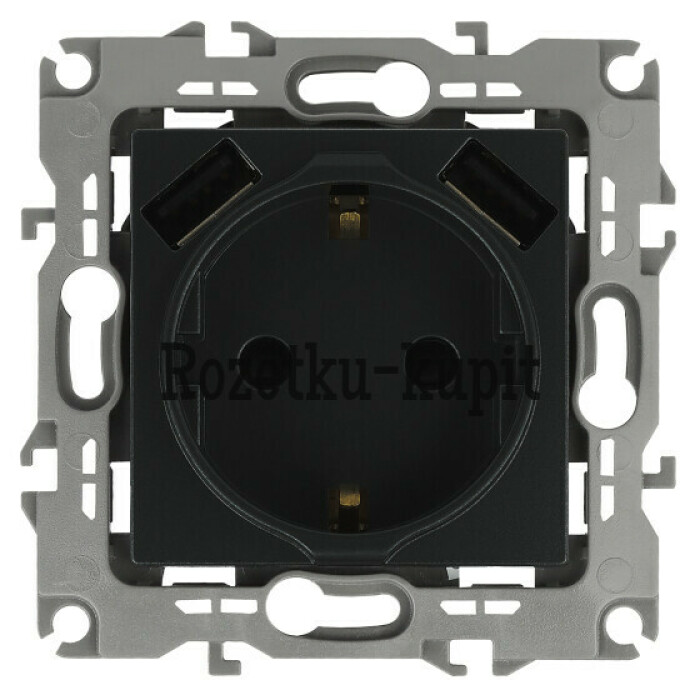 Розетка с заземлением с USB со шторками серии Эра 12 скрытой установки механизм цвет антрацит 12-4109-05. Номинальные характеристики 16А 250В/3А-5В . Сделана из поликарбоната. Монтаж в подрозетник производится и на лапки, и на винты. Рамки приобретаются отдельно. Рамки Эра 12: 1 пост 12-5001-хх, 2 поста 12-5002-хх, 3 поста 12-5003-хх, 4 поста 12-5004-хх, 5 постов 12-5005-хх. Рамки Эра 12 Сатин: 1 пост 12-5101-хх, 2 поста 12-5102-хх, 3 поста 12-5103-хх, 4 поста 12-5104-хх, 5 постов - 12-5105-хх (хх - код цвета: 01-белый, 02-слоновая кость, 03-алюминий, 04-шампань, 05-антрацит, 06-чёрный, 07-ольха(белёный дуб-сатин), 08-вишня, 09-дуб, 10-венге, 11-сосна, 21-жёлтый, 22-оранжевый, 23-красный, 24-охра, 25-бордо, 26-лайм, 27-зелёный, 28-голубой, 29-синий).
