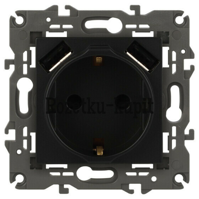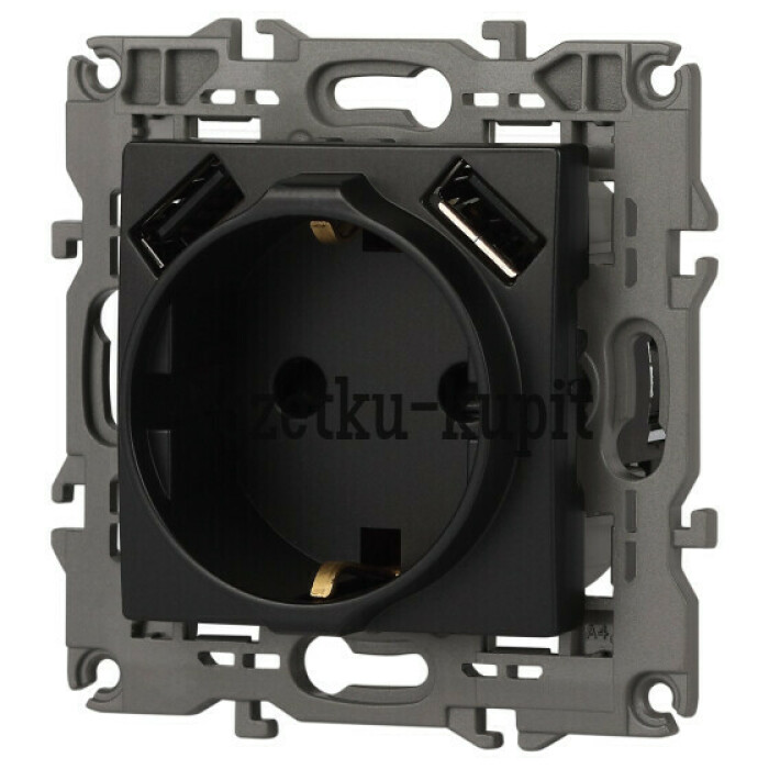 Розетка с USB серии Эра Elegance цвет антрацит 14-4109-05. Номинальные характеристики . Оснащёна автоматическими клеммами для надёжной фиксации жил кабеля в механизме. Рамки приобретаются отдельно. Рамки Эра Elegance ПЛАСТИК: 1 пост 14-5001-хх, 2 поста 14-5002-хх, 3 поста 14-5003-хх, 4 поста 14-5004-хх, 5 постов 14-5005-хх; СТЕКЛО: 1 пост 14-5101-хх, 2 поста 14-5102-хх, 3 поста 14-5103-хх, 4 поста 14-5104-хх; МЕТАЛЛ: 1 пост 14-5201-хх, 2 поста 14-5202-хх, 3 поста 14-5203-хх, 4 поста 14-5204-хх; ДЕРЕВО: 1 пост 14-5301-хх, 2 поста 14-5302-хх, 3 поста 14-5303-хх, 4 поста 14-5304-хх (хх - код цвета: 00-прозрачный, 01-белый, белёный дуб, 02-слоновая кость, 03-алюминий, 04-шампань, 05-чёрный, чёрное дерево, 07-ясень, 09-дуб, 10-венге, 11-клён, 14-медь, 21-жёлтый, 22-оранжевый, 23-красный, 25-бордо, 26-лайм, 27-зелёный, 28-голубой, 29-синий, 30-розовый, 31-мокко, 32-серый, 41-сталь, 42-титан).