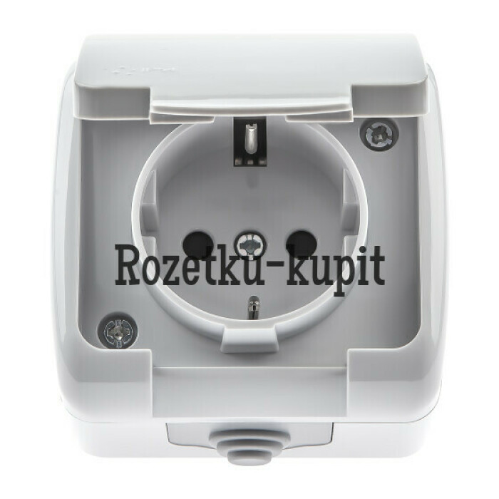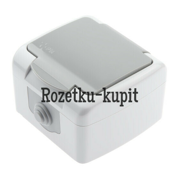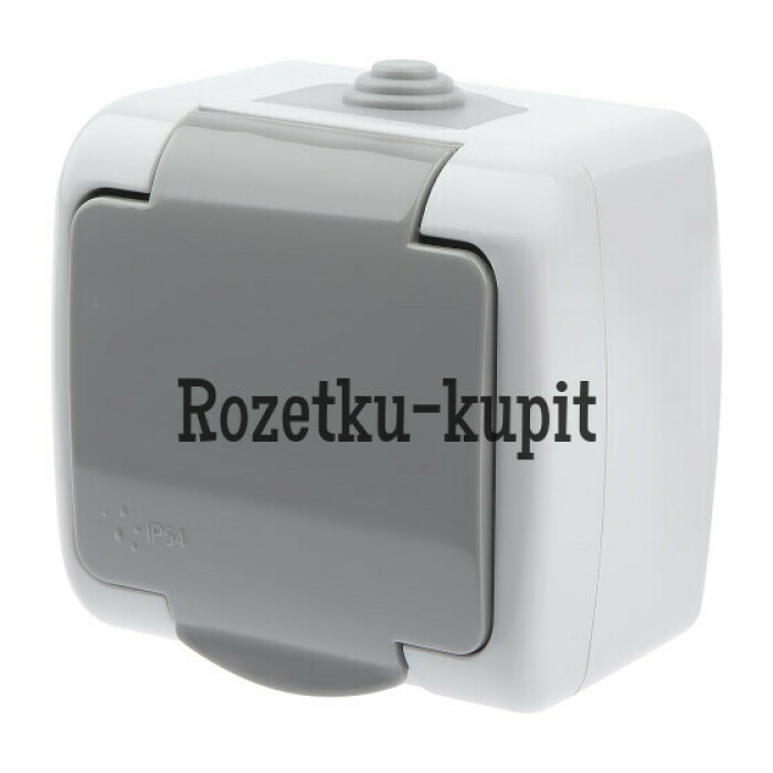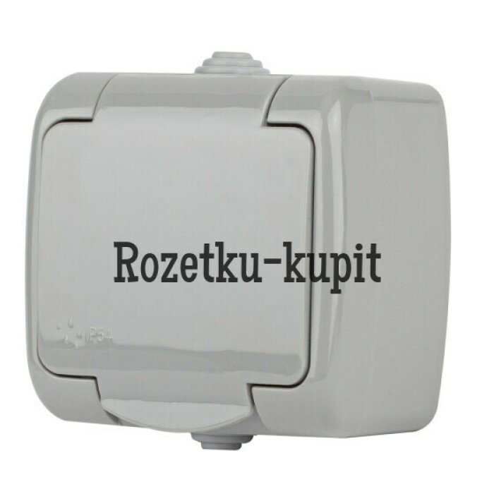 Розетка 2P+E Schuko шторки, 16А-250В, IP54, ОУ, Atlantic, серый