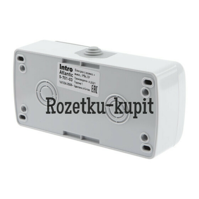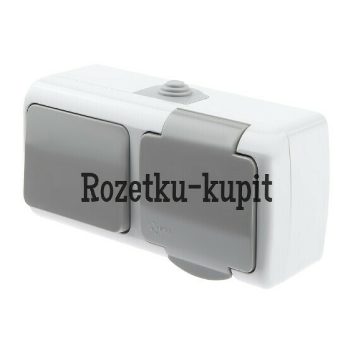 тка с выключателем Intro Atlantic 5-701-03 одноклавишным 2P+E, 10А-250В, открытой установки, IP54, серый