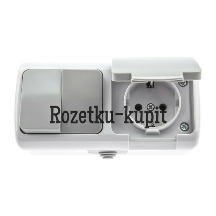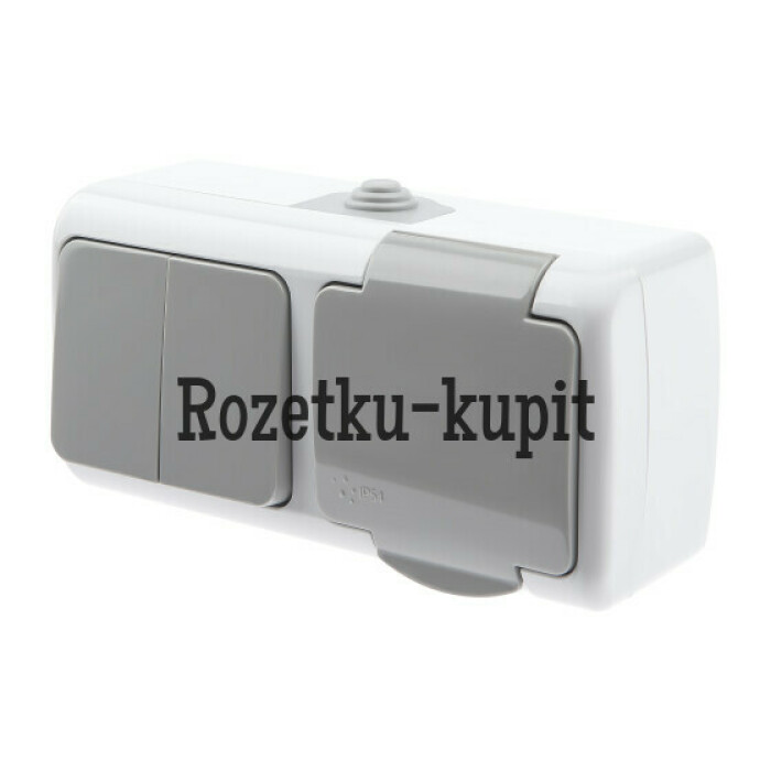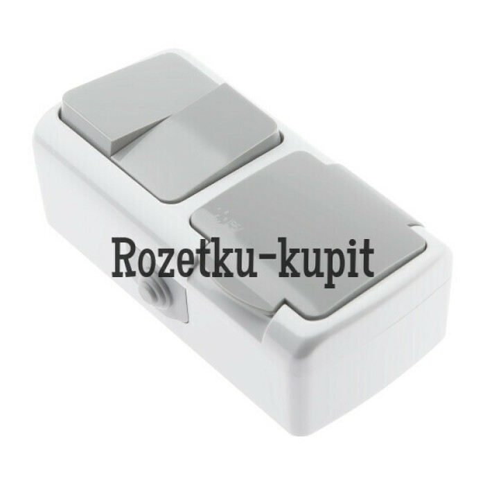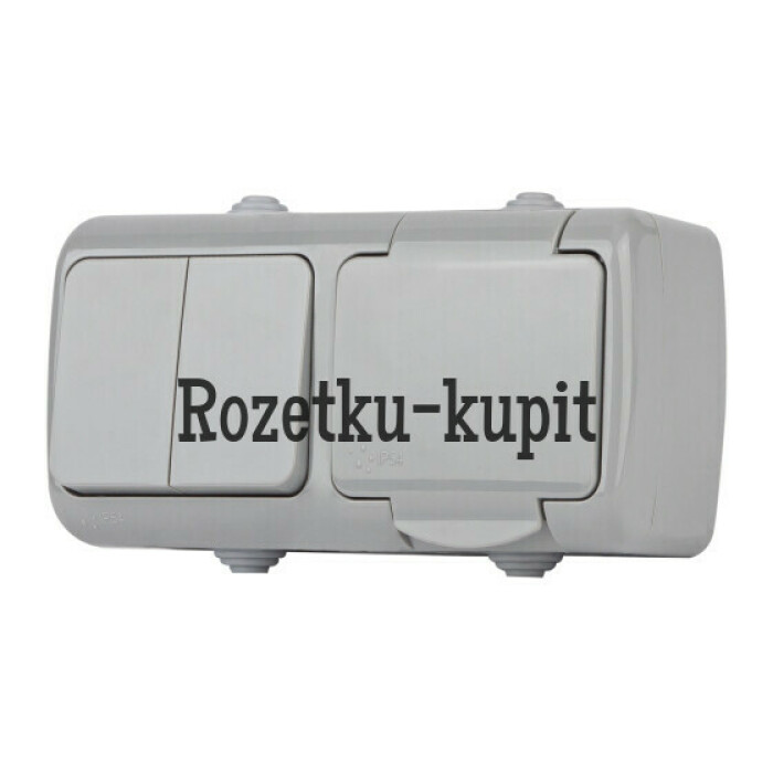Блок розетка 2P+E + выключатель двойн., 10(16)А-250В, ОУ, Atlantic, IP54, серый