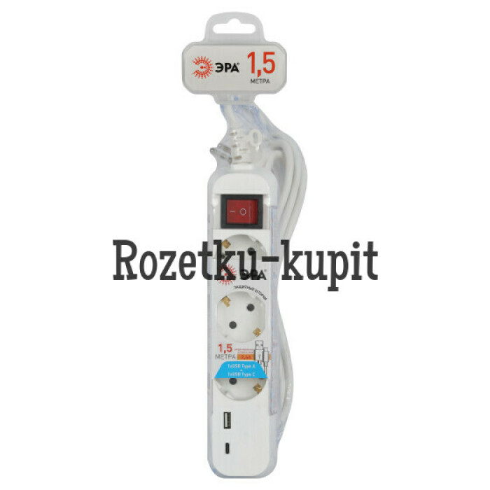 Удлинитель электрический ЭРА UB-3es-1,5m-USB с заземлением, с выключателем, 3 розетки, 1,5м ПВС 3x0,75мм2. Рассчитан на максимальную мощность 10А/2200Вт. 2-мя USB гнездами (Type A и Type C) для зарядки портативных устройств. Максимальная мощность USB разъемов: 2400 мА. Новые удлинители ЭРА с USB разработаны и произведены в России. Удобная кнопка включения позволяет отключать электроприборы, не выдёргивая вилку удлинителя из сети. Для комфортного извлечения вилка удлинителя имеет гибкое кольцо. Глубокие гнёзда удлинителей ЭРА с USB-портами надёжно фиксируют вилки электроприборов. Прочный и гибкий трёхжильный провод - залог электробезопасности и долговечности данных приборов. Разветвители и удлинители ЭРА с USB изготовлены из пожаробезопасных материалов, в составе которых присутствуют препятствующие горению антипирены. Корпусы ударопрочны. Доступен выбор длины шнура - 1,5, 3 или 5 метров. Удлинители ЭРА с 2 USB-портами и 3 розетками: арт. Б0052897 - со шнуром 1,5 м; арт. Б0052898 - со шнуром 3 м; арт. Б0052899 - со шнуром 5 м. Удлинители ЭРА с 3 розетками + 1 порт USB Type A + 1 порт USB Type C: арт. Б0052900 - со шнуром 1,5 м; арт. Б0052901 - со шнуром 3 м; арт. Б0052902 - со шнуром 5 м.