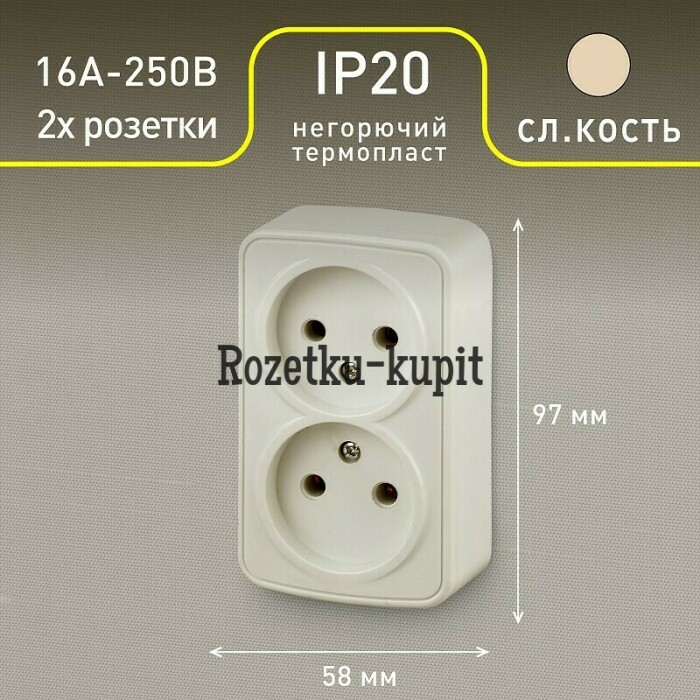3-203-02 Розетка Intro Polo 3-203-02 без заземления двойная 2х2P, 16A-250В, IP20, ОУ, слоновая кость
