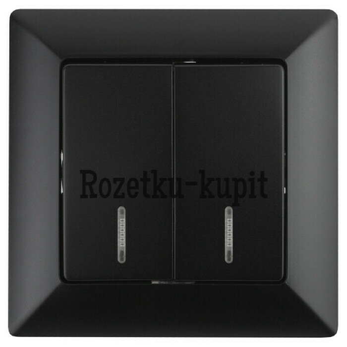 165 у156 уСкидка 9 уВ наличииЭра Б00537702-105-10 Выключатель Intro Quadro 2-105-10 двухклавишный с подсветкой, 10А-250В, IP20, ОУ, венге -