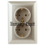 Розетка двойная 2-я серии Intro Solo скрытой установки цвет шампань 4-205-04. Номинальные характеристики 16А 250В. Розетка выполнена из негорючего термопласта, укомплектована одноместной рамкой, оснащена винтовыми клеммами. Клеммы с двумя отверстиями позволяют соединять соседние розетки шлейфом. Установка в подрозетник производится как на монтажные лапки, так и на винты.