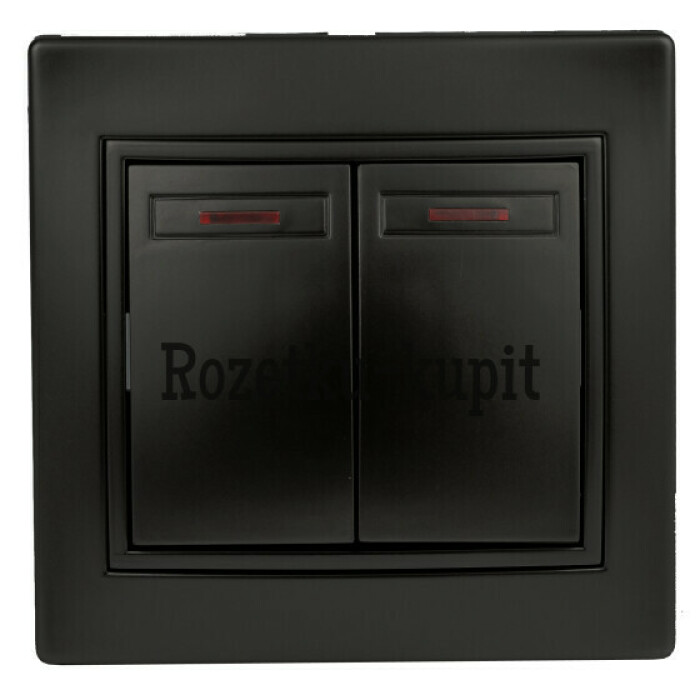 Выключатель двойной с подсветкой, 10А-250В, IP20, СУ, антрацит Intro Plano 1-105-05