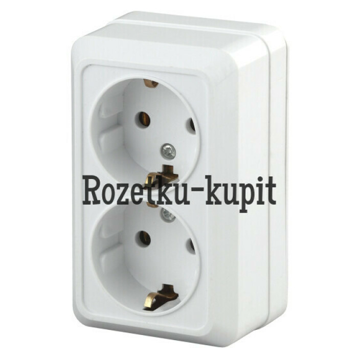 Розетка Intro Quadro 2-204-01 с заземлением двойная 2х2P+E Schuko, 16А-250В, IP20, ОУ, белый