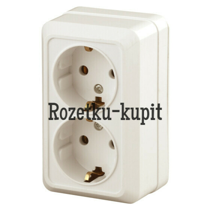 Розетка Intro Quadro 2-204-02 с заземлением двойная 2х2P+E Schuko, 16А-250В, IP20, ОУ, слоновая кость