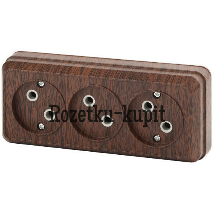Розетка тройная 3-я серии Intro Quadro открытой установки цвет венге 2-205-10. Номинальные характеристики 16А 250В. Розетка выполнена из термопласта, стали и латуни, оснащёна винтовыми зажимами.