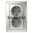 Розетка двойная 2-я серии Intro Plano скрытой установки цвет алюминий 1-205-03. Номинальные характеристики 16А 250В. Розетка выполнена из керамики, укомплектована одноместной рамкой, оснащена винтовыми клеммами. Клеммы с двумя отверстиями позволяют соединять соседние розетки шлейфом. Установка в подрозетник производится как на монтажные лапки, так и на винты.